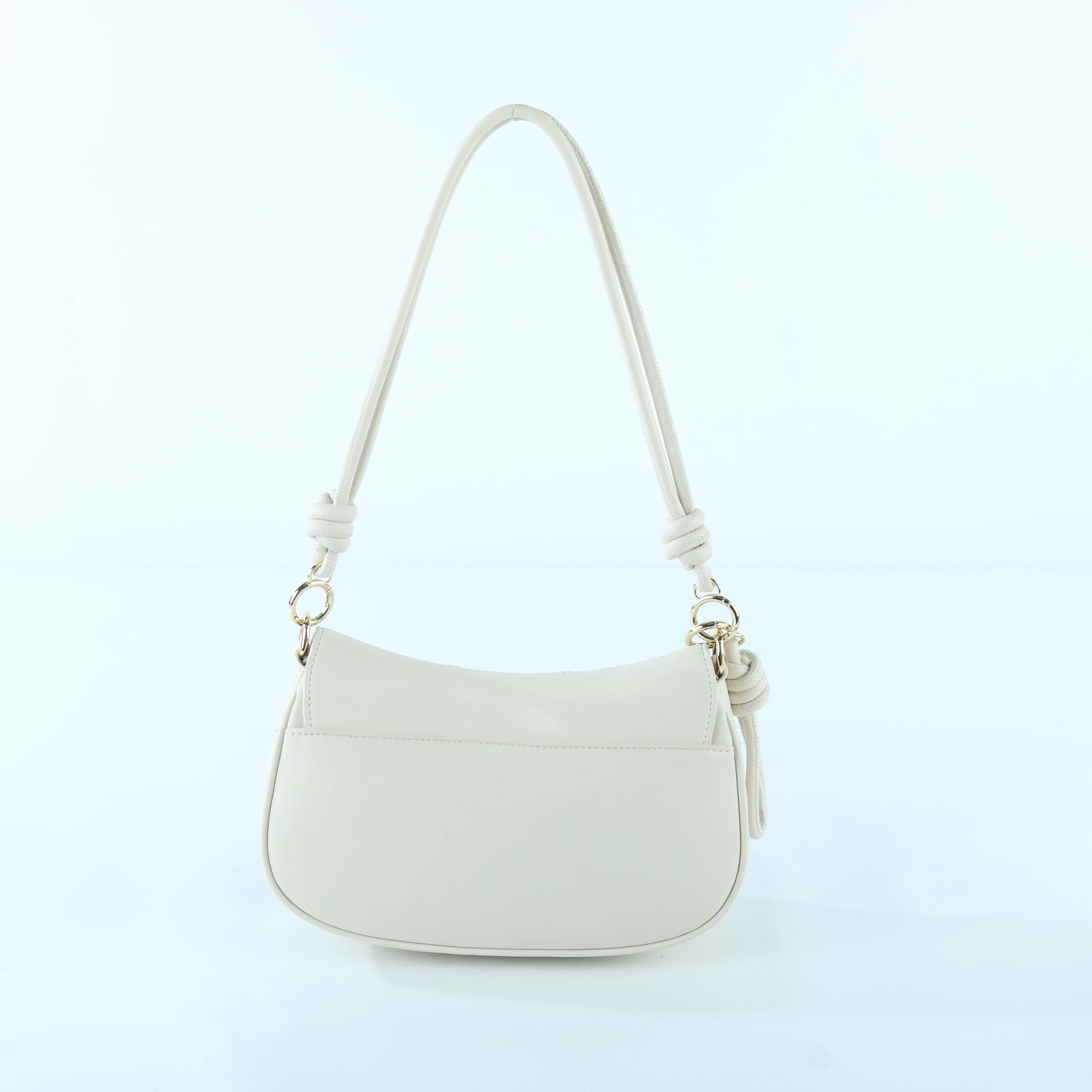 Elegant Off-White Saddle Bag with Knot Strap Detail | Versatile Crossbody & Shoulder Bag