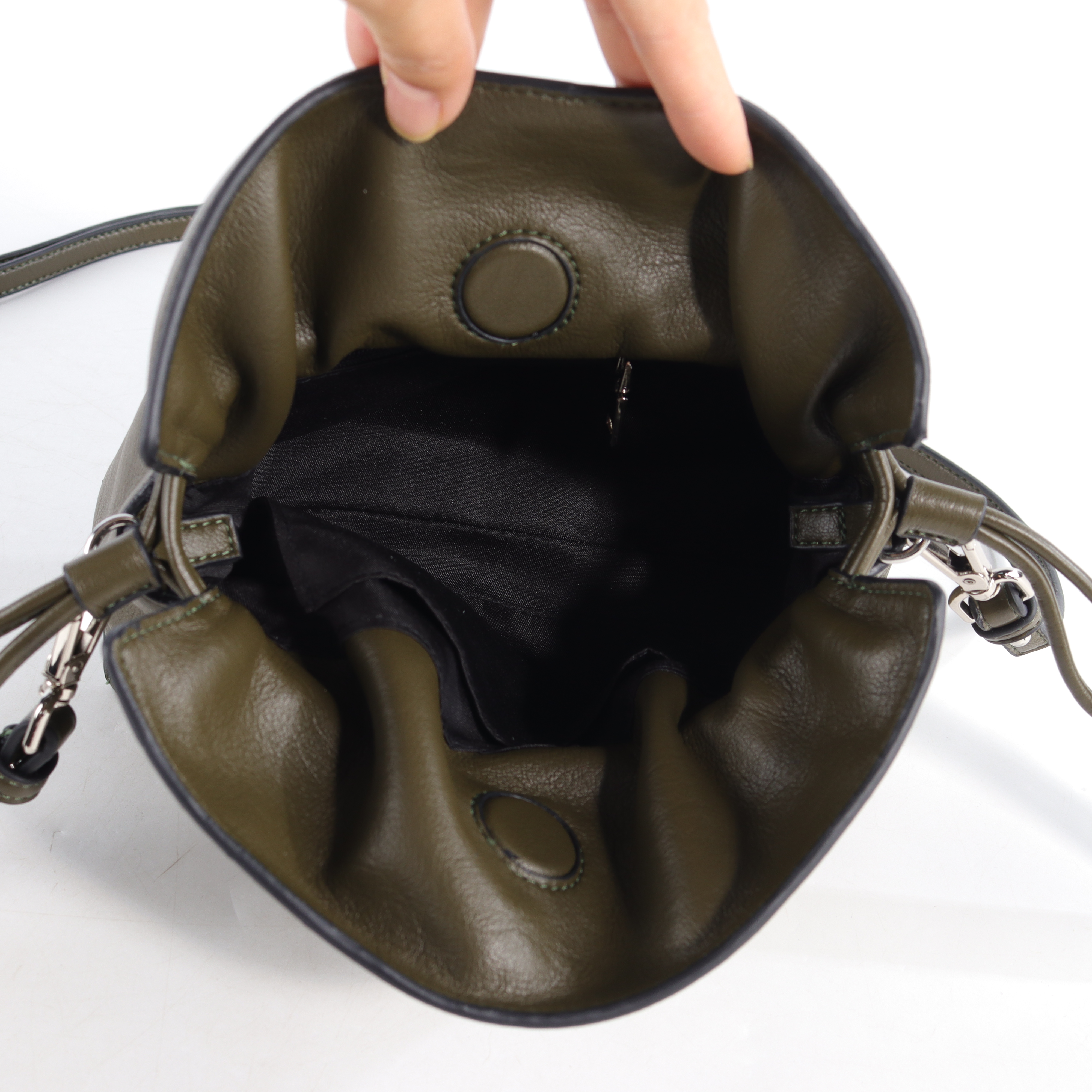 This olive green hue is effortlessly versatile, pairing seamlessly with neutral tones, denim, or muted pastels. Its soft, slouchy shape balances casual comfort with sophisticated style, making it the ultimate go-to bag for the modern woman who values quality and understated elegance.